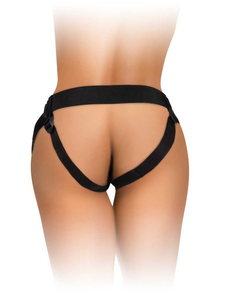 Das Harness ist mit stabilen, breiten Gurten ausgestattet, die mithilfe robuster Kunststoffschnallen individuell angepasst werden können. Es passt sich Hüftumfängen von 61 cm bis 137 cm an und sorgt so für eine perfekte Passform bei verschiedensten Körpertypen. Das macht das strap on für einsteiger besonders komfortabel und sicher zugleich.