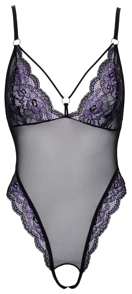 Bildschöner Body von Cottelli LINGERIE aus feinem Powernet mit 2-farbiger Blütenspitze an den soften Cups und den hohen Beinausschnitten. Rundum weich und elastisch für hohen Tragekomfort. Im Dekolleté dekorative Stretchriemchen verbunden mit einem Ring. Die Träger sind passend verstellbar. Durch den offenen Schritt führen zwei elastische Bänder.