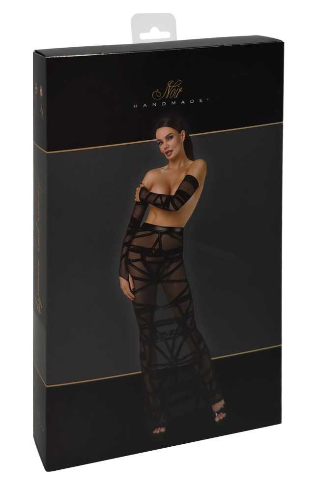 Der transparenter langer Rock bondage kombiniert feinmaschigen Netzstoff mit kunstvoll platzierten Satinbändern im Bondage-Stil. Diese stilvollen Details umrahmen die Beine und die Hüften, strecken optisch die Figur und erschaffen eine provokant-sinnliche Optik, die sowohl dominant als auch verspielt wirkt.