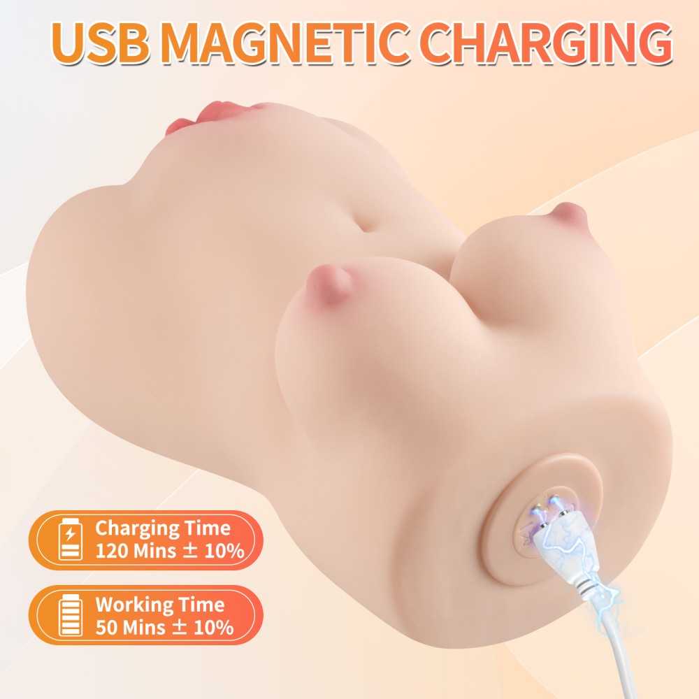 Hochwertiges, weiches, lederähnliches Material, empfohlen für Frauen. Erotikspielzeug mit brust- und vaginaförmiger Öffnung, 3 Geschwindigkeitsstufen und 7 Vibrationsfunktionen. Die Verwendung dieses Spielzeugs verbessert die Selbstkontrolle beim Geschlechtsverkehr und verlängert dessen Dauer deutlich. Das Produkt wiegt 1,5 kg. Die Maße sind: Höhe 22 cm, Brustumfang 38 cm, Hüftumfang 37 cm, Taillenumfang 24 cm und Breite 13 cm. Vor und nach jedem Gebrauch mit lauwarmem Seifenwasser und einem Reinigungsmittel waschen. Gleitmittel auf Wasserbasis wird empfohlen.