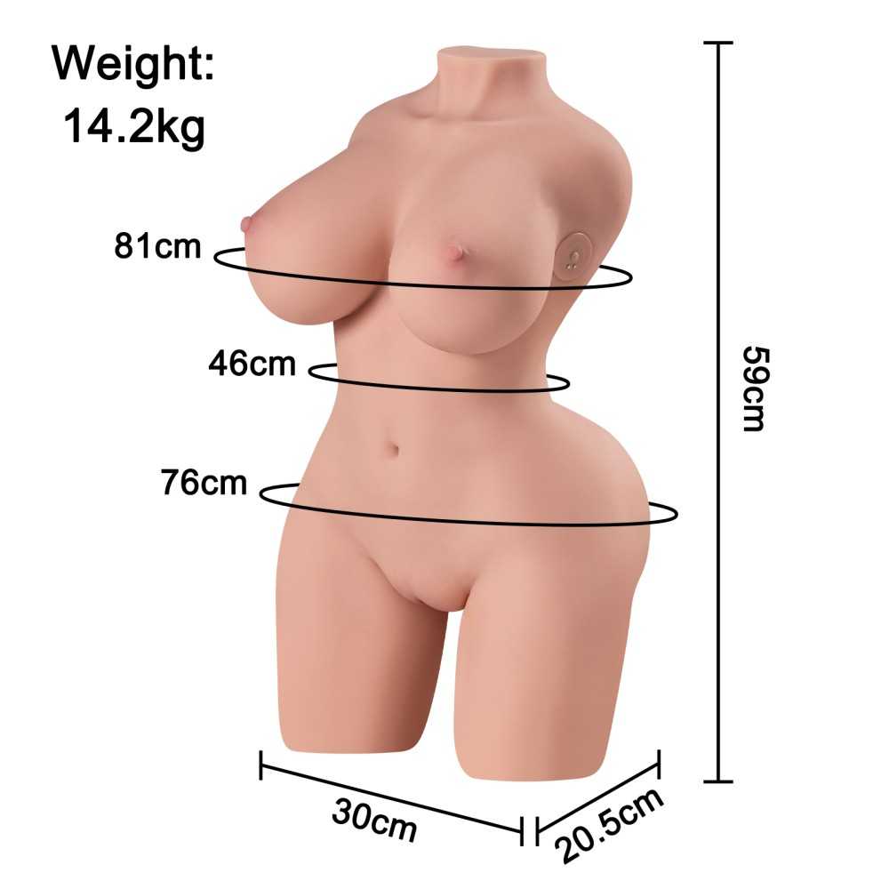 Hochwertiges, weiches, lederähnliches Material, empfohlen für Männer. Erotikspielzeug mit brust- und vaginaförmiger Öffnung, 3 Vibrations- und 4 Bewegungsfunktionen. Brustumfang 81 cm, Hüftumfang 76 cm, Taillenumfang 46 cm. Steuerung per App. Die Anwendung verbessert die Selbstkontrolle beim Geschlechtsverkehr und verlängert so dessen Dauer deutlich. Gewicht: 14 kg. Vor und nach jedem Gebrauch mit lauwarmem Seifenwasser und einem Reinigungsmittel waschen. Gleitmittel auf Wasserbasis wird empfohlen.