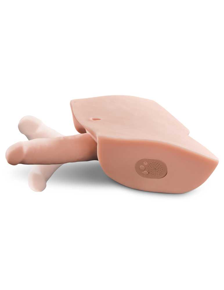 Der interaktive Masturbator verfügt über einen realistisch geformten Penis, der sowohl für vaginale als auch für anale Stimulation verwendet werden kann. Das flexible, hautähnliche Material sorgt für ein authentisches Empfinden, während die detailgetreue Gestaltung zusätzliche Reize bietet. Mit einem Gewicht von rund 3,1 kg vermittelt das Toy Stabilität und ein realitätsnahes Gefühl.