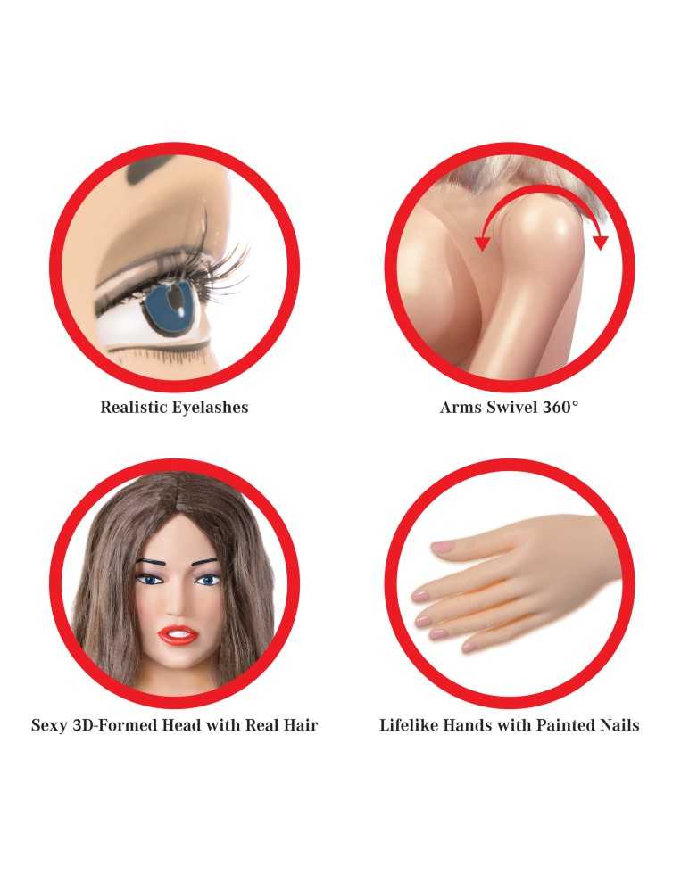 Beide Einsätze sind weich, hautähnlich und sorgen für ein besonders authentisches Gefühl. Durch ihre herausnehmbare Gestaltung lassen sie sich außerdem leicht reinigen. Mit dieser Funktion hebt sich die lebensgroße Liebespuppe deutlich von herkömmlichen Modellen ab.