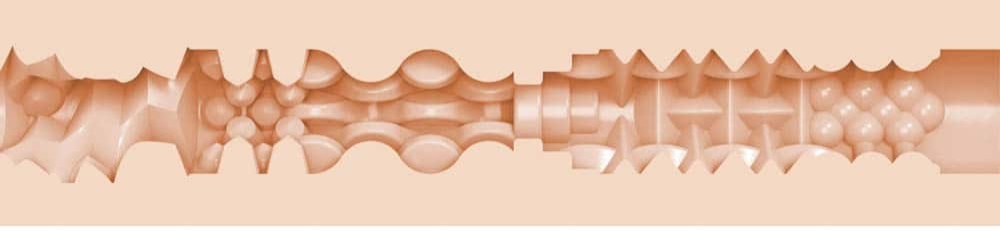 Im Inneren der Hülle verbirgt sich eine speziell für dieses Modell entwickelte Textur mit einer Kombination aus engen Rillen, Noppen und wechselnden Weiten. Diese Struktur wurde konzipiert, um ein besonders intensives, saugendes Gefühl zu erzeugen – bei jedem Stoß und in jeder Tiefe. Das Ergebnis: realistische Reize, gezieltes Training und pure Lust.