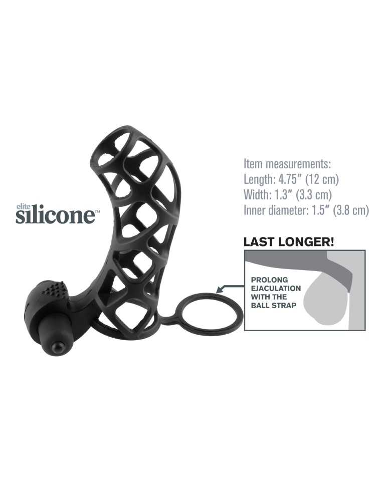 Der Extreme Silicone Power Cage Black ist ein vielseitiges, aufregendes Toy, das sowohl dem Träger als auch dem Partner intensive Lustmomente schenkt. Dieses Penis Sleeve bedeckt den gesamten Penis, verlängert das Liebesspiel und stimuliert zusätzlich die Klitoris durch einen integrierbaren Mini-Vibrator.