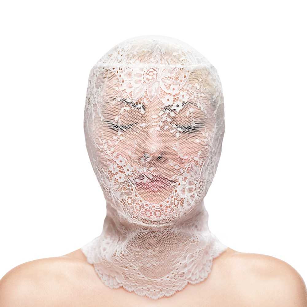 Die lace hood white passt sowohl zu sanften, verführerischen Szenen als auch zu intensiven Fetish-Spielen, bei denen das visuelle Element im Vordergrund steht.