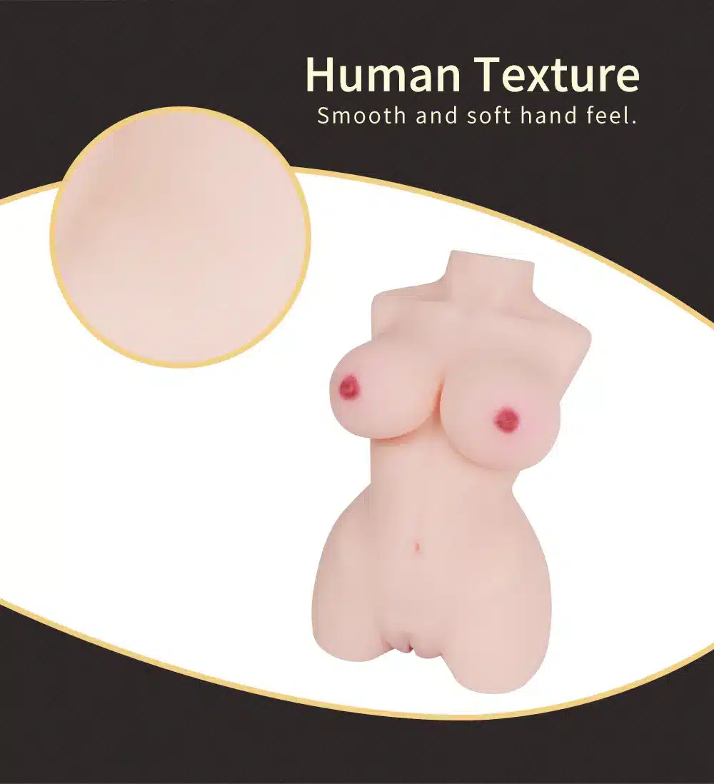 Ein tieferer Einblick Das Highlight dieser Silikondoll ist ohne Zweifel die Kombination aus anatomisch korrekten Vaginal- und Analkanälen. Mit ihrer komplexen Struktur bieten diese Kanäle ein intensives Erlebnis, das durch die Vielfalt der inneren Konturen noch gesteigert wird. Leicht und handlich Dank ihres leichten Designs lässt sich die Doll mühelos mit nur einer Hand bewegen und positionieren. Diese Flexibilität ermöglicht es dem Benutzer, verschiedene Stellungen und Winkel zu erkunden, ohne dabei an Komfort einzubüßen. Perfektes Hals-zu-Hüft-Verhältnis Das wohlproportionierte Design der Doll, mit einem idealen Hals-zu-Hüft-Verhältnis, verleiht ihr eine ästhetisch ansprechende und zugleich realistische Form, die kaum von der Realität zu unterscheiden ist Kompakte Größe für unauffällige Lagerung Ihre kompakte Größe macht die Doll zu einem idealen Begleiter für jene, die Wert auf Diskretion legen. Sie lässt sich leicht verstecken und transportieren, ohne aufzufallen.