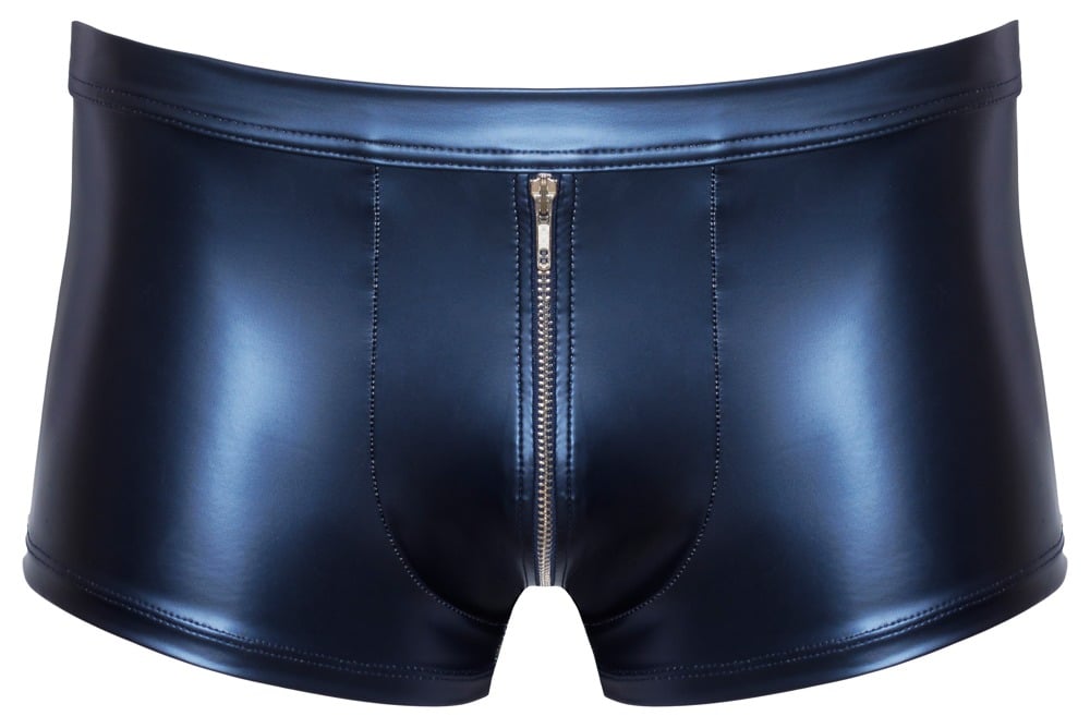 Blaue Pants von NEK im trendigen Metallic-Mattlook. Eng und körperbetont geschnitten. Mit silberfarbenem Reißverschluss vorne. Weich, elastisch und mit bezogenem Bundgummi für maximalen Tragekomfort.