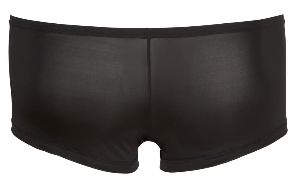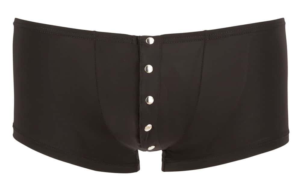 Betonen Sie Ihre Männlichkeit mit dieser leicht transparenten, elastischen Pants mit silberfarbener Druckknopfleiste und eingefasstem Bündchen. Schwarz. 85% Polyamid, 15% Elasthan.