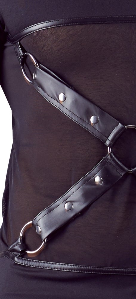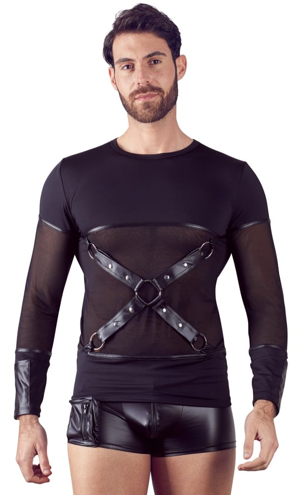 Longsleeve im Mattlook, mit stilsicherem Powernet-Einsatz in der Front, der die Muskeln durchscheinen lässt. Das abknöpfbare Brustharness setzt schöne und exklusive Details für den Betrachter, genau wie verführerische Einladungen, die Lust auf mehr machen.