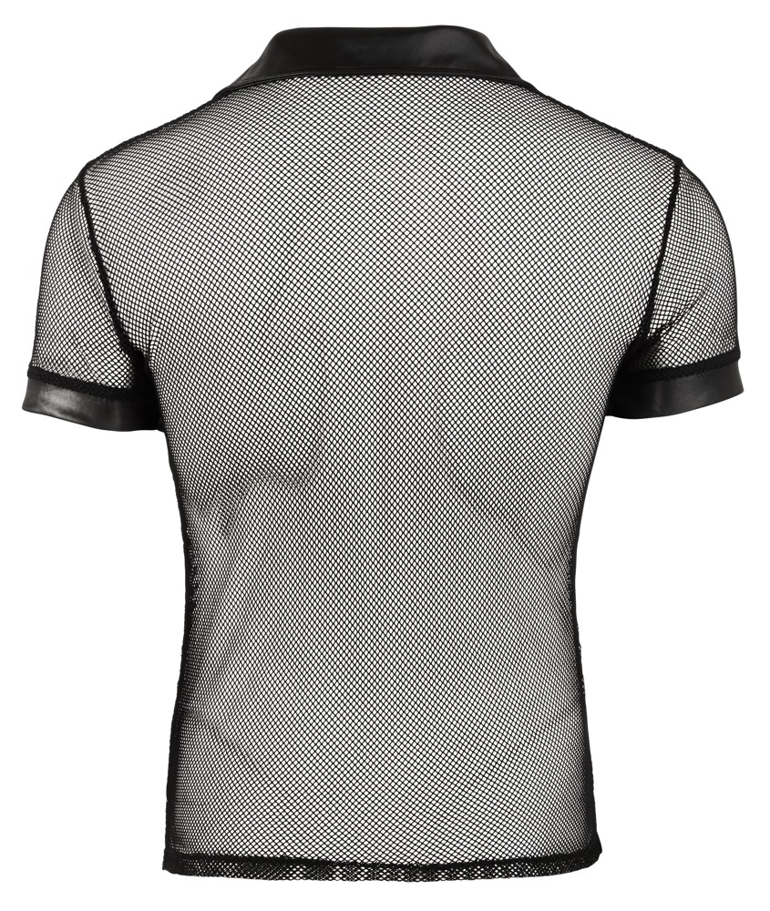 Maskulines Hemd mit Polokragen und kurzer Druckknopfleiste in der Front, die alle Blicke auf sich zieht – nicht zuletzt dank des anmachenden Materialmix aus Netz und Wetlook.