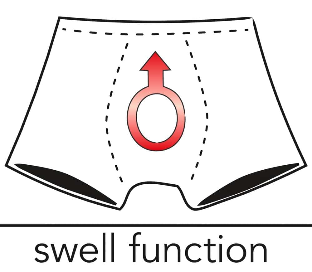 String von Svenjoyment mit Swellfunktion. Leicht gepolstert im roten Lackglanz mit schwarzen Kontrasten. Breiter komfortabler Webgummibund.