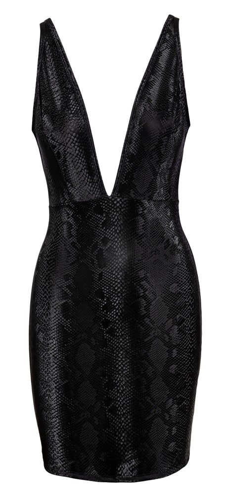 Trendiges kurzes Kleid von Cottelli PARTY in mattglänzend schillernder Schlangenhaut-Optik. Enge taillierte Schnittführung mit extra tiefem Ausschnitt vorne und hinten. Fantastisch elastisch für hautnahen Sitz und hohen Tragekomfort.