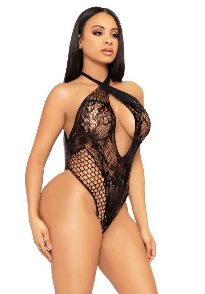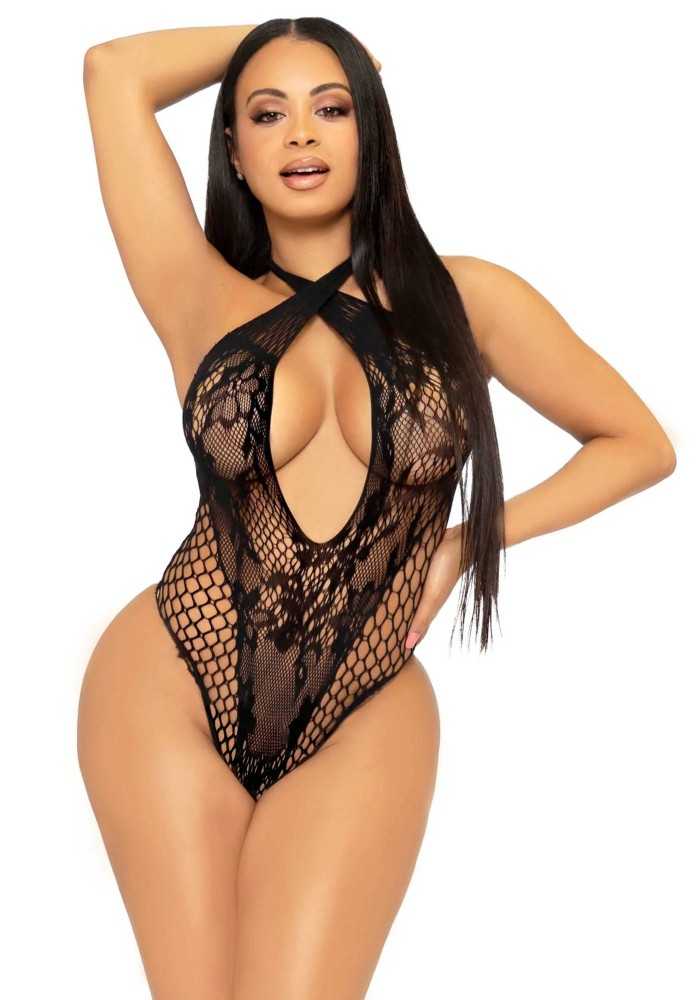 Dieser verführerische Body in klassischem Schwarz kombiniert filigranes Netzgewebe mit eleganten floralen Mustern. Das elastische Material sorgt für eine körperbetonte Passform und hebt die weiblichen Vorzüge stilvoll hervor. Mit seinen feinen Trägern und dem attraktiven Design ist dieser Body das perfekte Key-Piece für sinnliche Momente. Ein weiches Tragegefühl und hohe Dehnbarkeit garantieren zudem optimalen Komfort.