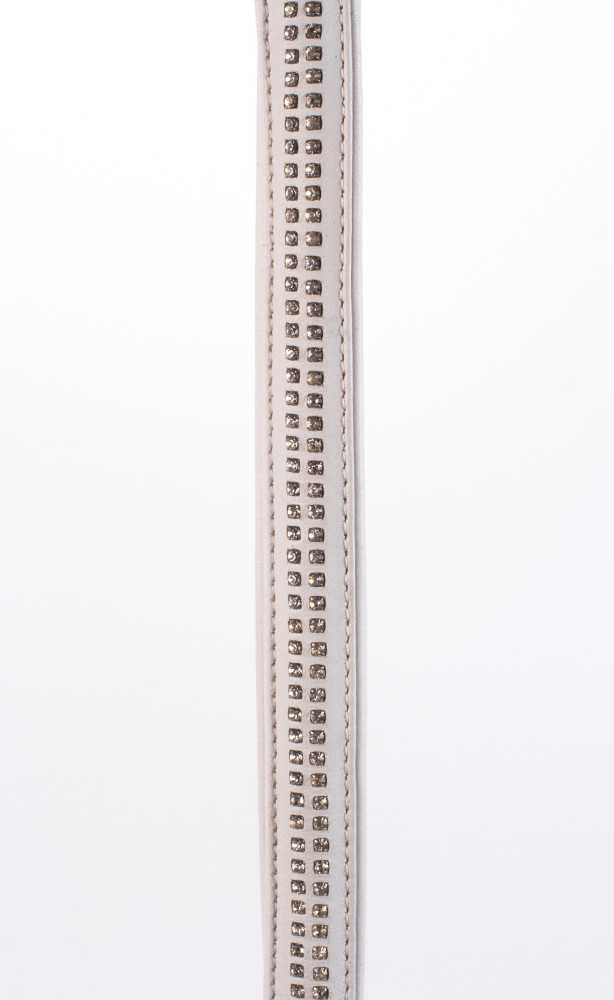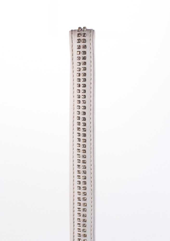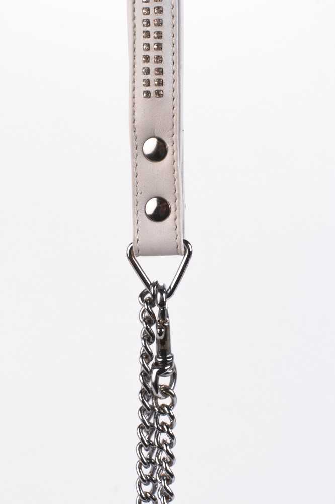 Lamb Leather Handle with 2 Rows of Small Rhinestones and Metal Chain White