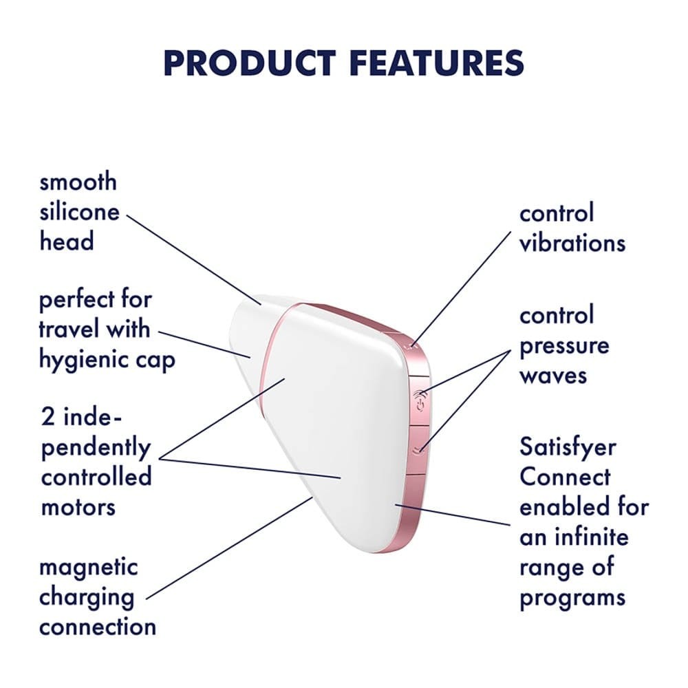 Mit 10 Druckwellenprogrammen und 11 Vibrationsmodi bietet der Love Triangle bereits ab Werk ein breites Spektrum an lustvollen Möglichkeiten. Doch durch die Satisfyer App wird er zu einem echten Erlebnis-Booster: