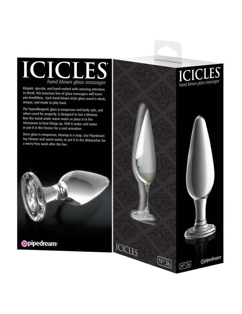 Der No. 26 Clear Glas Analplug ist ein elegantes, klassisches Toy, das durch seine handgefertigte Verarbeitung und das edle Material Borosilikatglas überzeugt. Mit seiner glatten Oberfläche, dem stabilen Standfuß und der klaren, transparenten Optik ist dieser Glas Analplug klar sowohl für Anfänger als auch für erfahrene Nutzer ein stilvolles und funktionales Accessoire.