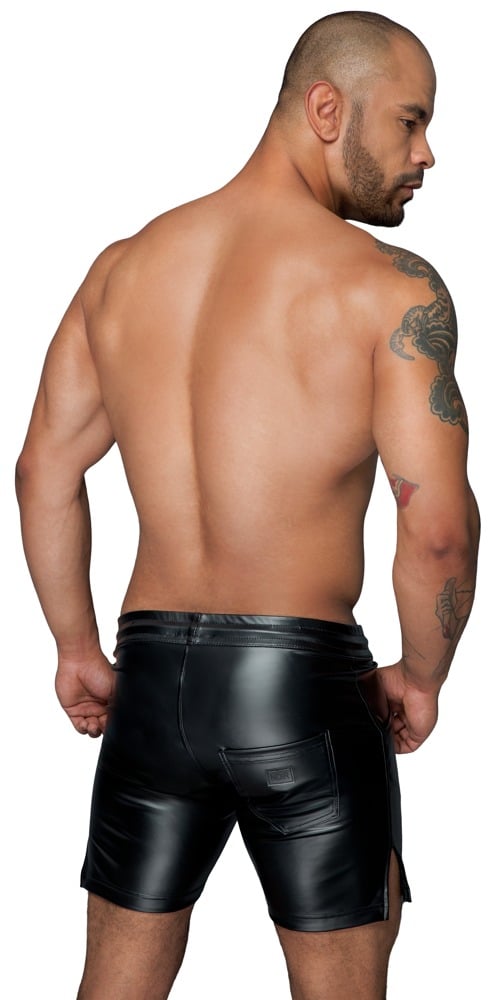 Betonende Shorts Missbehaved von Noir im schwarzen Powerwetlook. Fantastisch elastisch für hautnahen Sitz und hohen Tragekomfort. Mit kürzerer bequemer Beinlänge und variablem Kordelzug im Bund. Mit Eingriffstaschen und einer aufgesetzten Gesäßtasche.