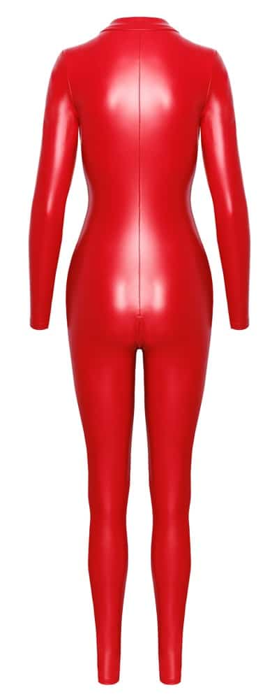 Hauteng geschnittener, taillierter Langarm-Overall Orgia von Noir im roten Powerwetlook mit edlem mattem Finish. Schmiegt sich an wie eine zweite Haut. Dabei weich und elastisch für maximalen Tragekomfort. Praktisch und erotisch zugleich ist der 3-Wege-Reißverschluss. Vom kleinen Stehkragen durch den Schritt bis über den Po lässt er sich vielseitig öffnen und schließen.