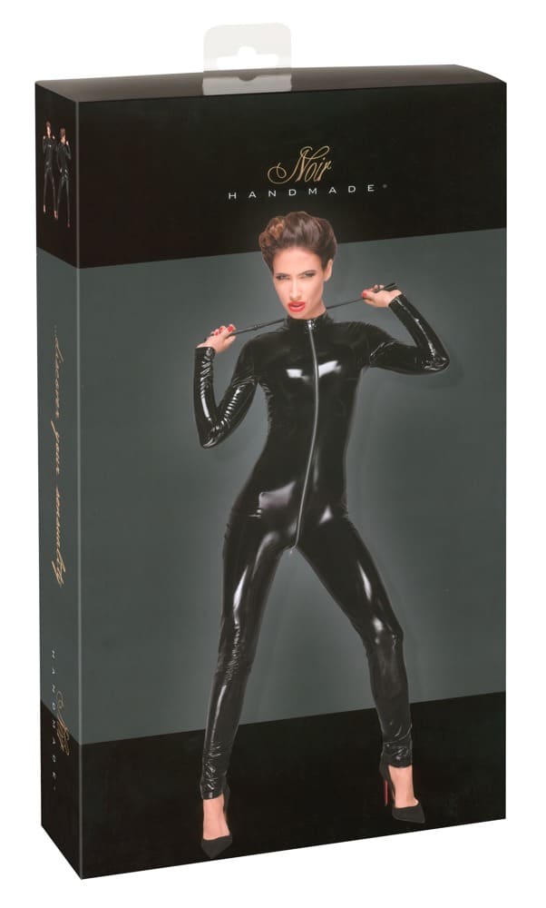 Sinnlich glänzender Overall Decadence von Noir für den gewagten Auftritt. Ein dekorativer 3-Wege-Metallreißverschluss reicht vorne vom Kragen bis in den Schritt. Für ein leichteres An- und Ausziehen haben die langen Ärmel und Beine zusätzliche Metallreißverschlüsse.