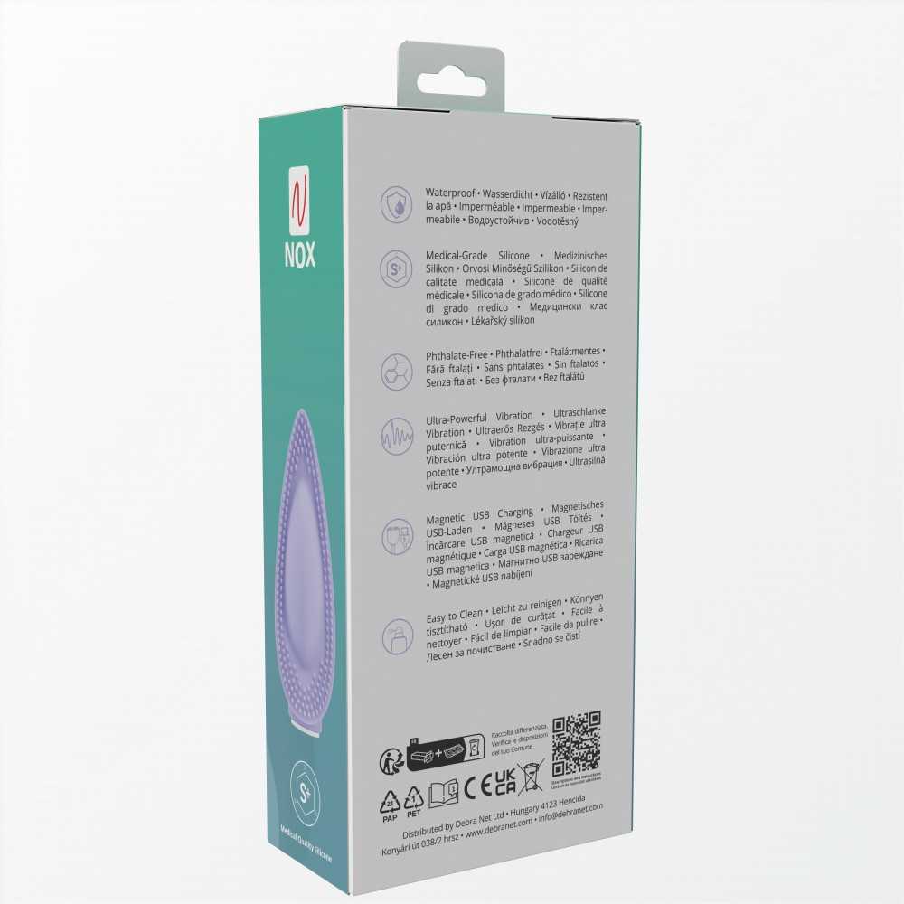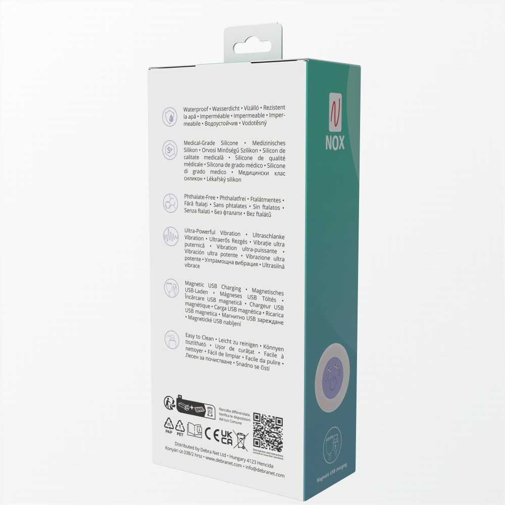 Der NOX Mia Vibrator besteht aus medizinischem Silikon, das für seine Hautfreundlichkeit, Langlebigkeit und Pflegeleichtigkeit bekannt ist. Es ist vollkommen frei von Phthalaten und fühlt sich samtig weich an. In Kombination mit der strukturierten Oberfläche entsteht ein intensives, vielseitiges Lustgefühl.