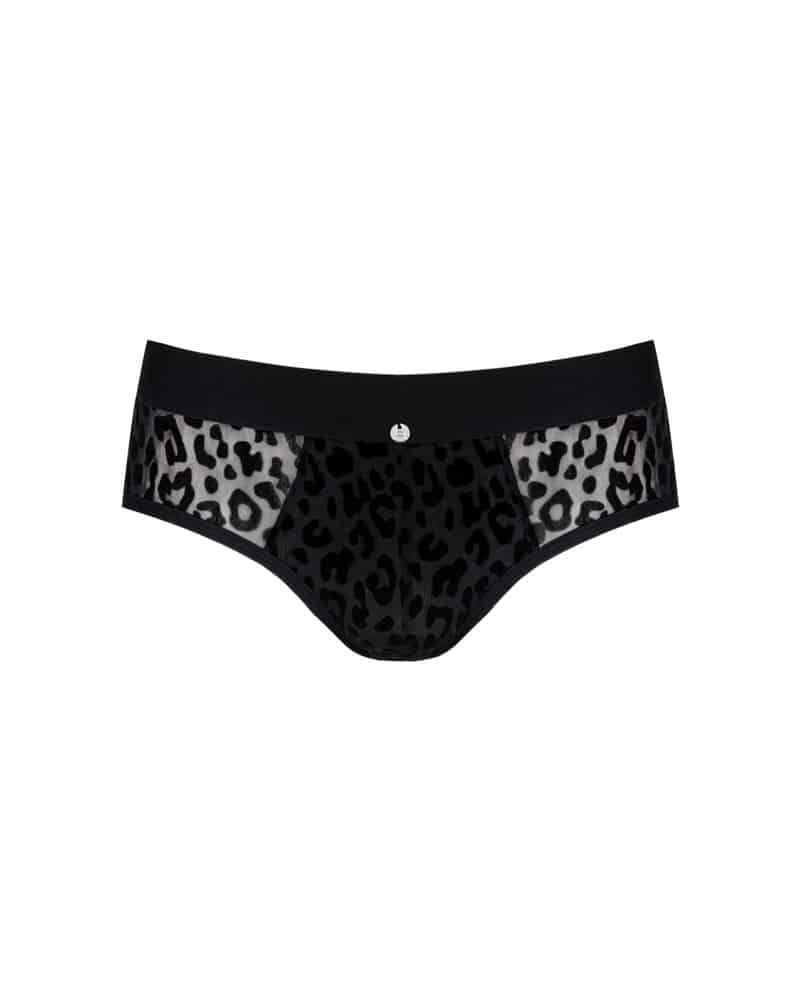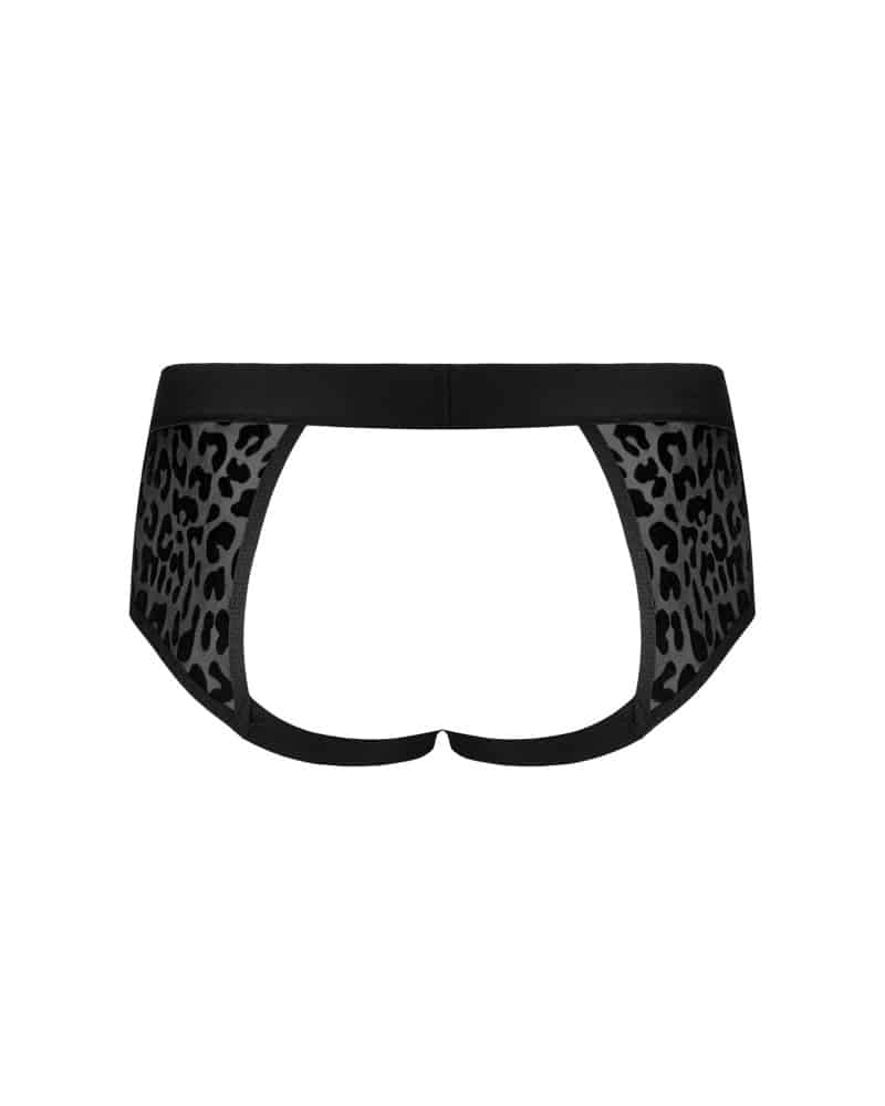 Jock Azmeron von Obsessive in schwarzer Leo-Look-Transparenz mit blickdichtem Beutel. Weich und elastisch für vollen Komfort. Bequemer Gummibund mit kleinem Metall-Element vorne. Komfortable Jock-Straps lassen den Po aufregend frei, pushen und betonen.