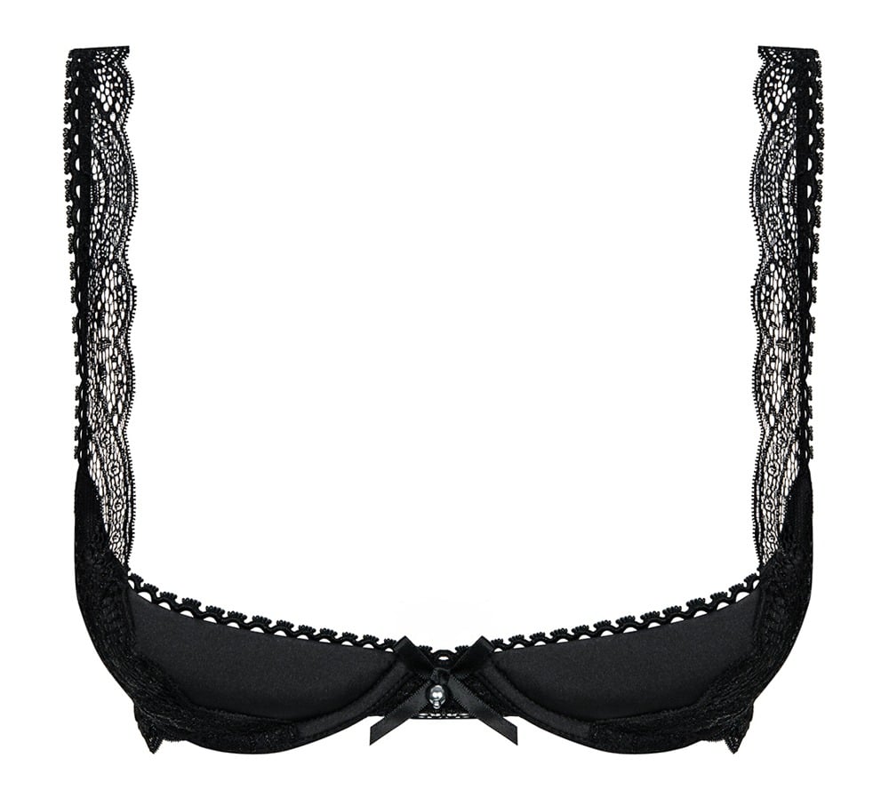 Bügel-Hebe Miamor von Obsessive im Materialmix aus Stretchstoff und edler Spitze. Träger vorne aus Spitze, verstellbar. Hinten Hakenverschluss.