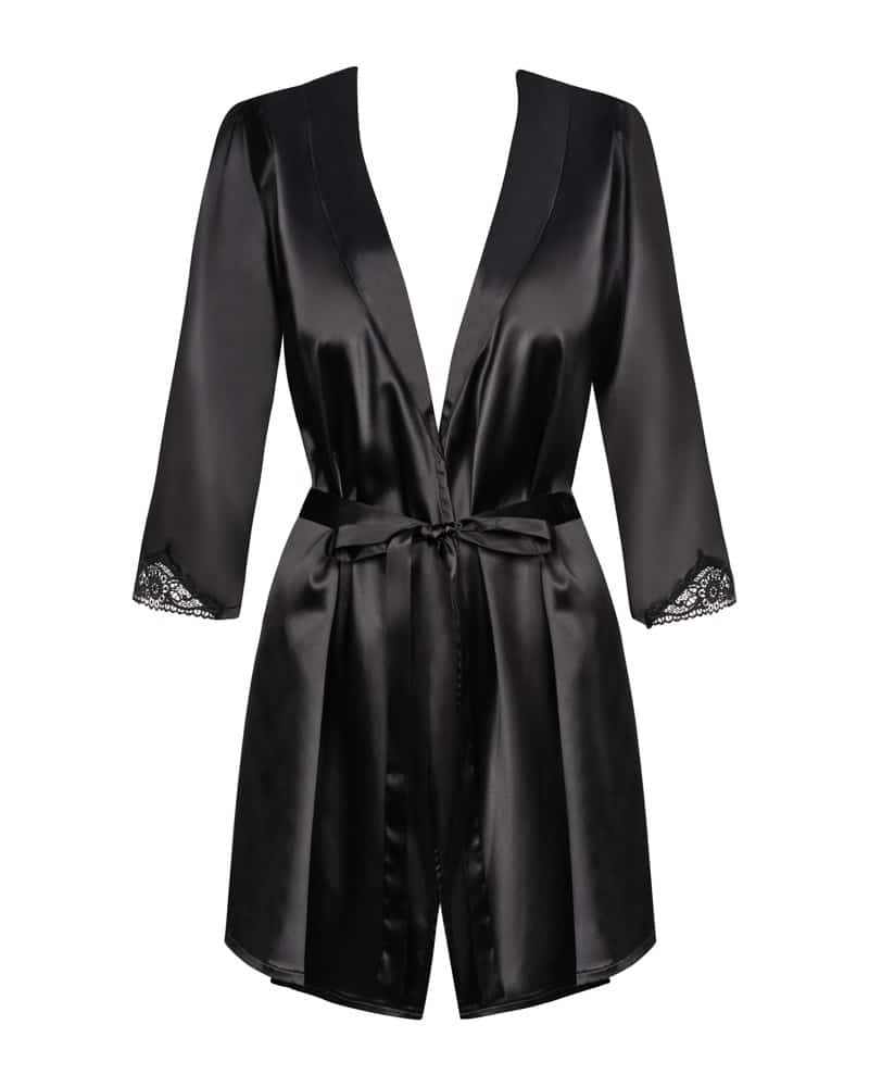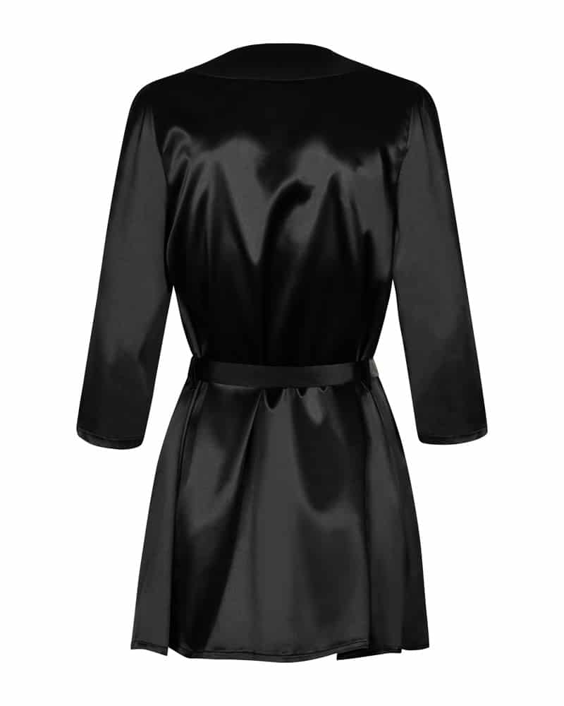 Schwarze Satinia-Robe im Dienste der Liebe und des Vergnügens: