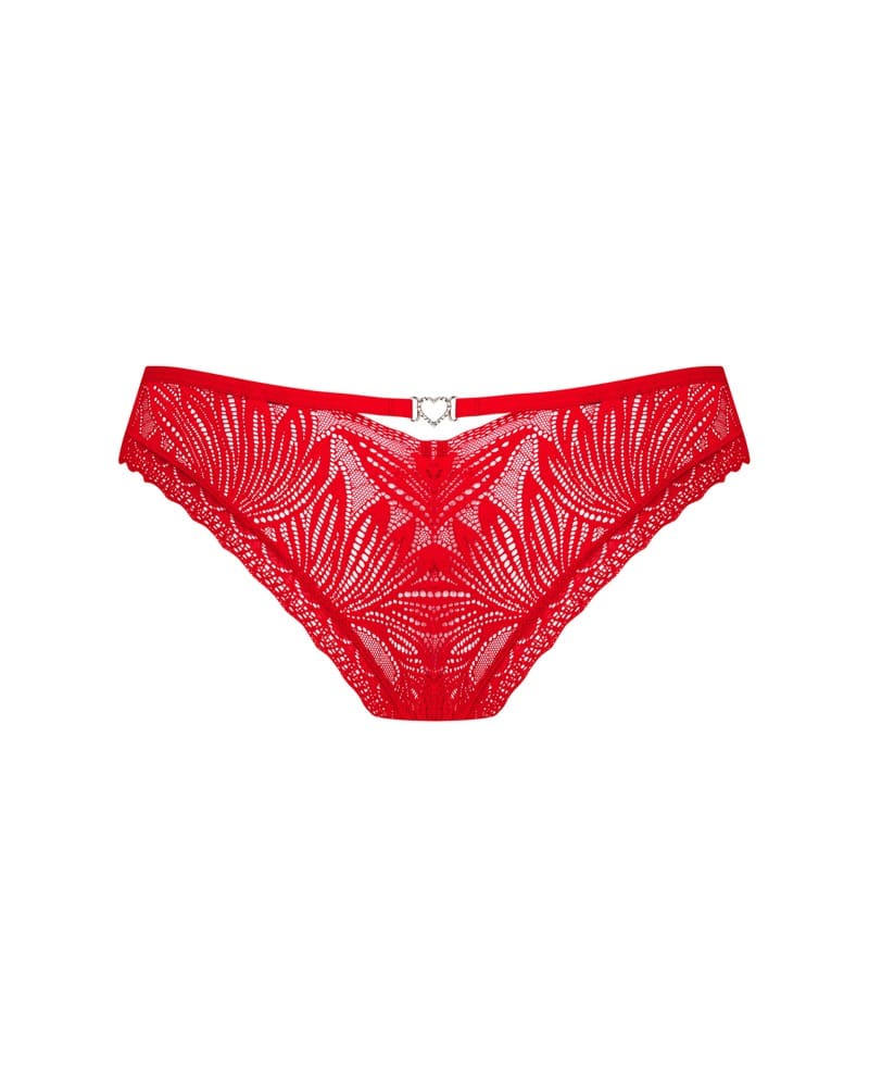 Die feinen Panties Chilisa von Obsessive sind komplett aus zarter Blütenspitze gefertigt und rahmen weibliche Kurven perfekt ein. In der Front ist ein raffiniertes Cut-out, verbunden mit einem zarten Band, das den Blick auf den Schritt lenkt. Das glitzernde Herz-Detail am Po ist ein bezaubernder Eyecatcher.
