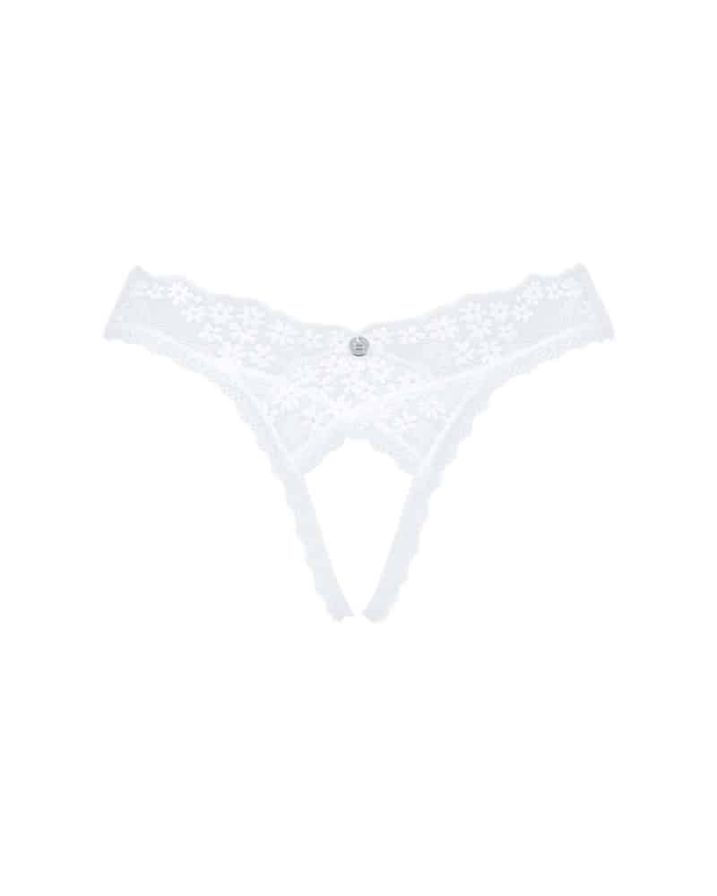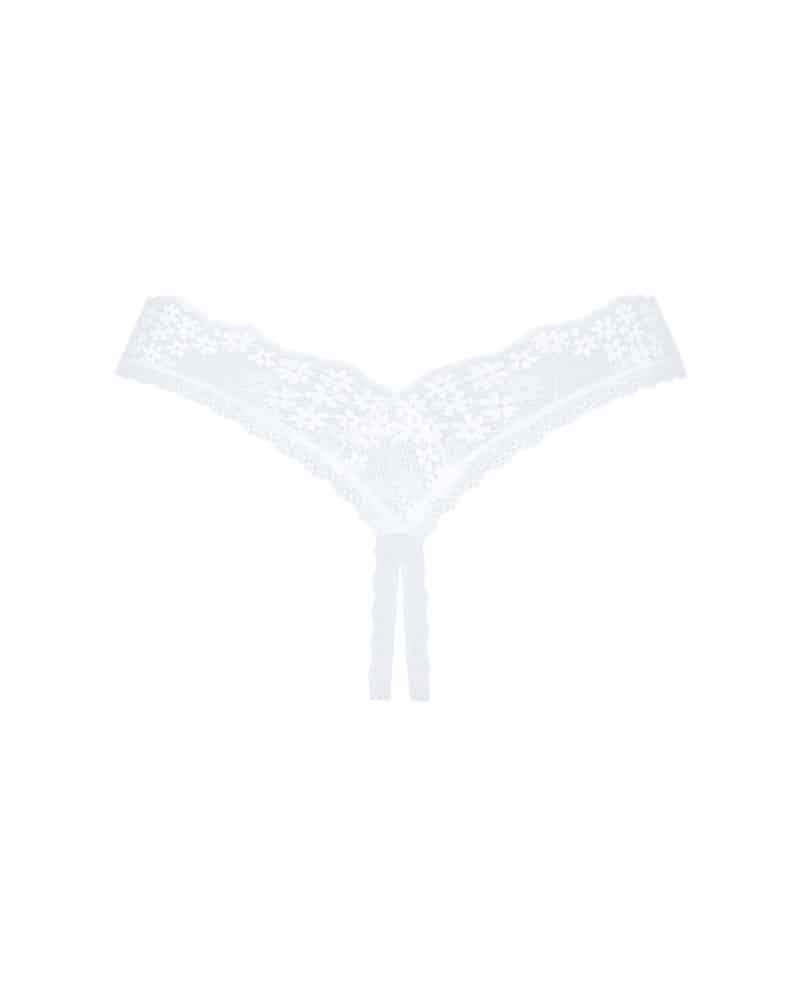 Weißer String ouvert Heavenlly von Obsessive aus weicher elastischer Spitze. Im Schritt einladend offen. Die etwas höhere Schnittform betont sexy Po und Beine.