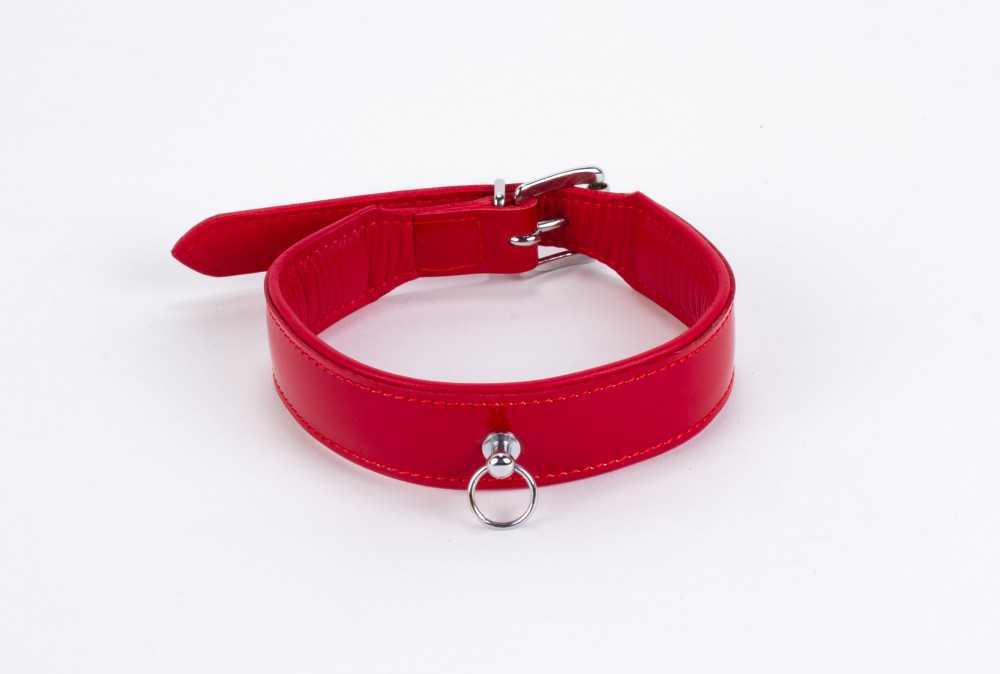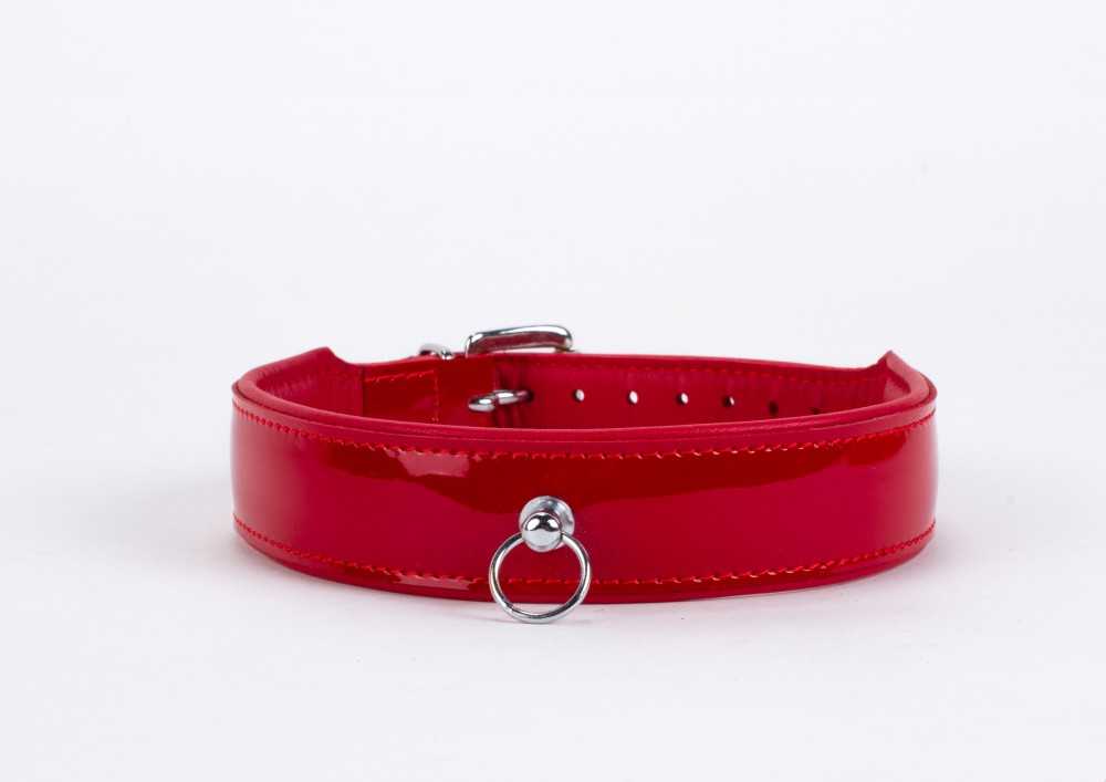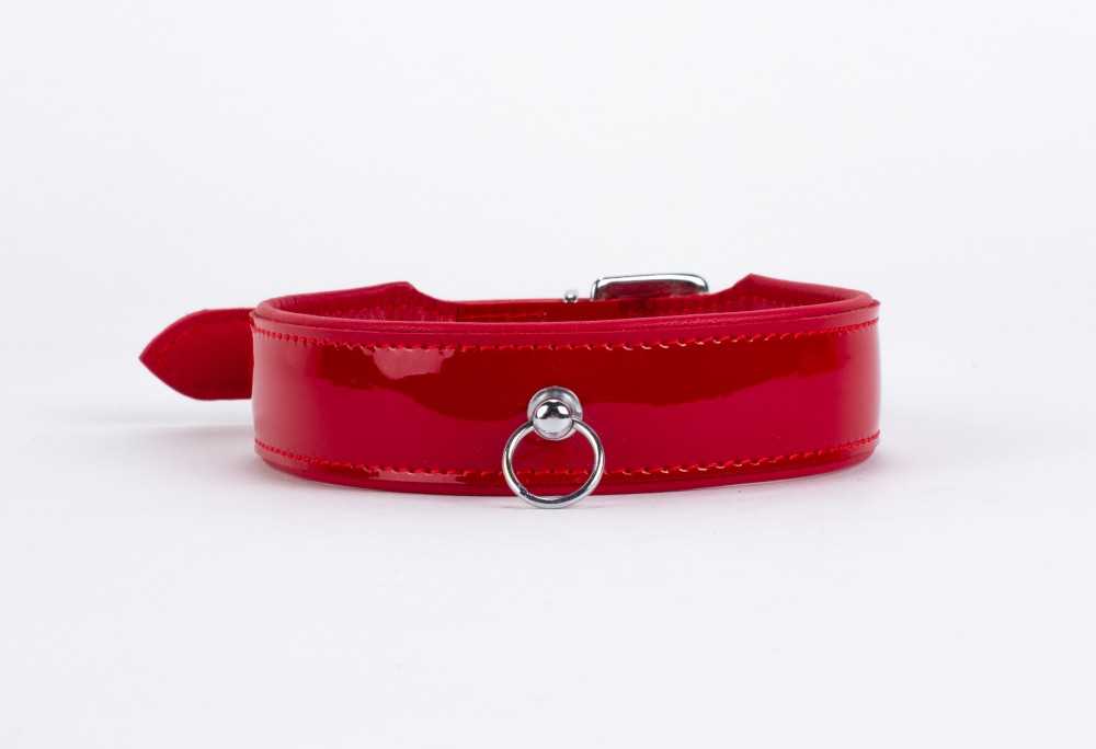 – Rotes Halsband aus glänzendem Lackleder