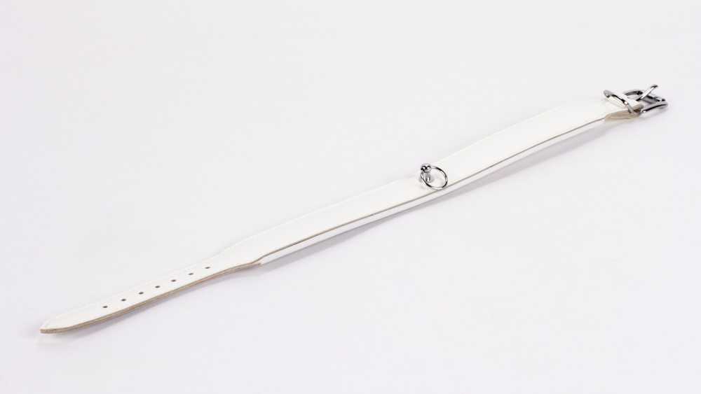 Die Farbe Weiß steht für Reinheit, Unterwerfung – aber auch für eine subtile Provokation. In Kombination mit dem glänzenden Finish wird das Halsband zu einem ausdrucksstarken Accessoire, das sofort Aufmerksamkeit auf sich zieht. Ob als stilvoller Kontrast zu dunkler Fetisch-Kleidung oder als zentrales Element eines weißen BDSM-Outfits – dieses Halsband ist ein echter Blickfang.