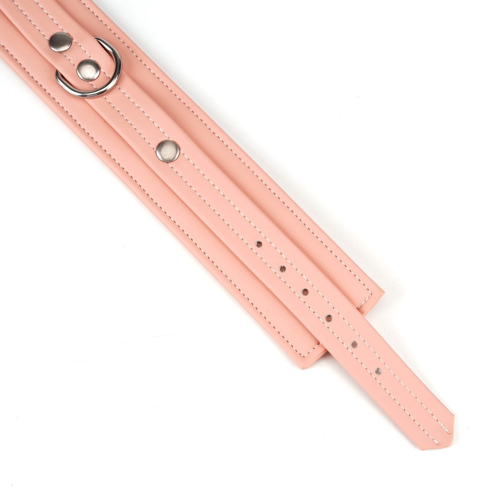 Schon beim ersten Anblick ziehen die glänzenden silberfarbenen Schnallen und die edlen Nieten die Blicke auf sich. In Kombination mit dem leuchtenden Pink entsteht ein verspielter, sinnlicher Look, der deine Bondage-Sammlung auf aufregende Weise erweitert.