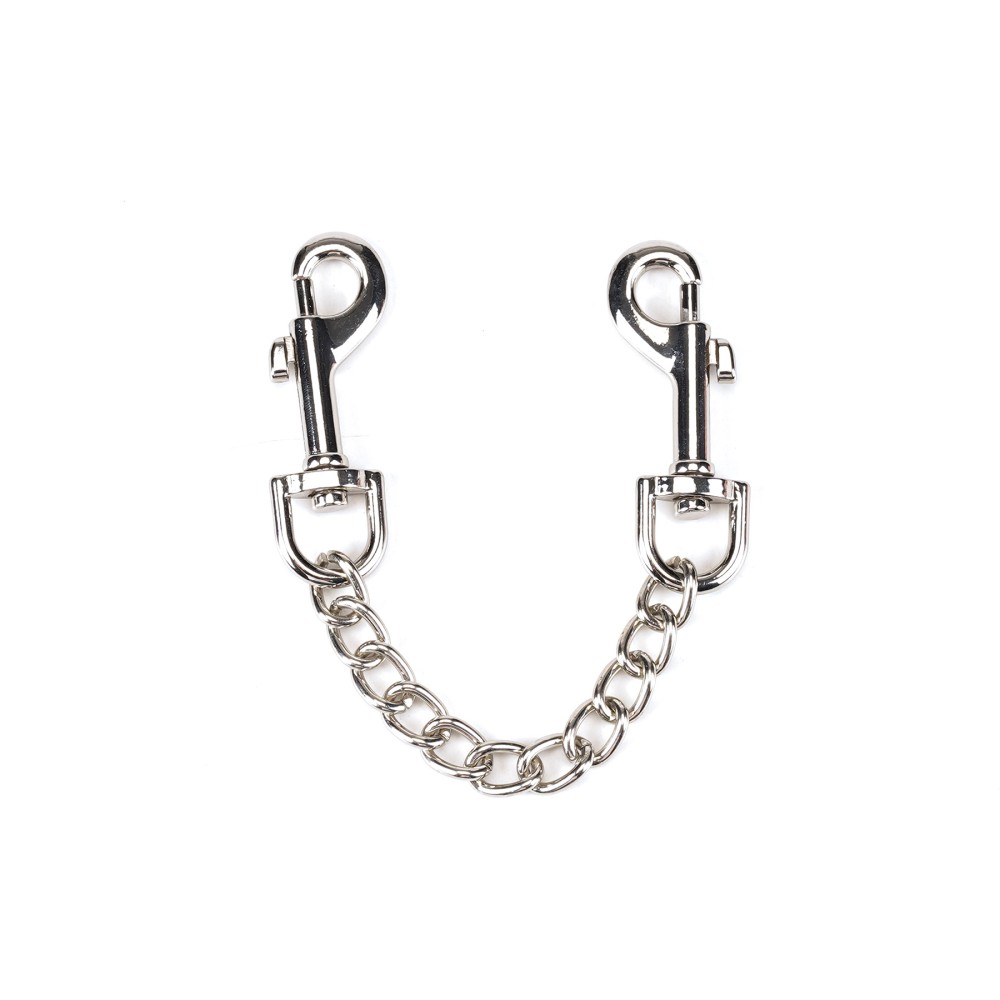 Die Fesseln sind mit einer stabilen Metallkette verbunden, die über Quick-Release-Karabiner befestigt ist. Diese sorgen für einen sicheren Halt und lassen sich bei Bedarf schnell lösen – ein Detail, das für Vertrauen und Sicherheit während des Spiels unverzichtbar ist.