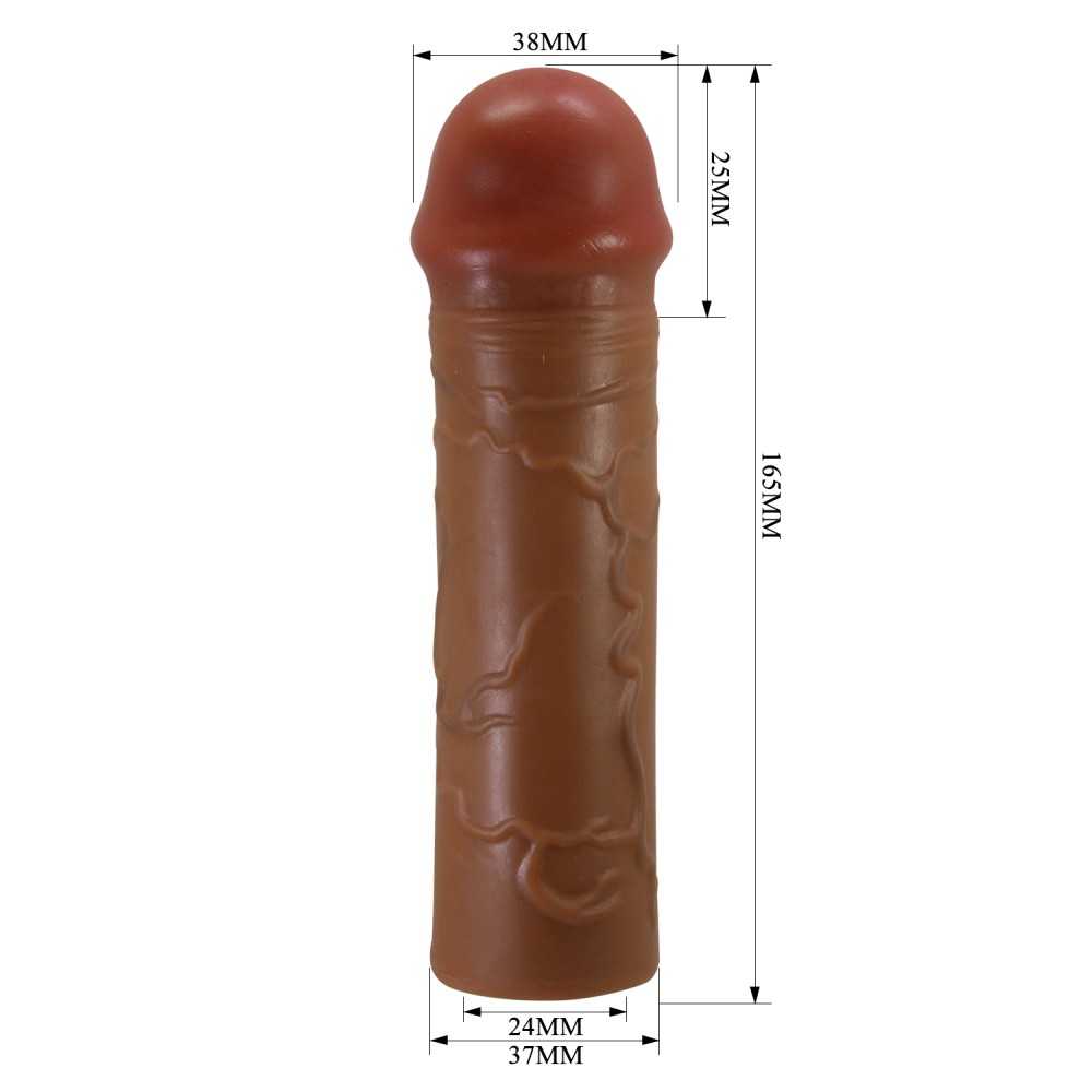 Der Pretty Love Nile Brown ist ein erotisches Accessoire, das speziell dafür entwickelt wurde, das Liebesspiel länger und intensiver zu gestalten. Der Sleeve wird wie ein Kondom über Penis oder Vibrator gestülpt und umschließt ihn vollständig. Mit seiner strukturierten Außenseite sorgt er für zusätzliche Reize beim Partner, während das Material die Empfindlichkeit reduziert und so die Dauer des Geschlechtsverkehrs verlängert.