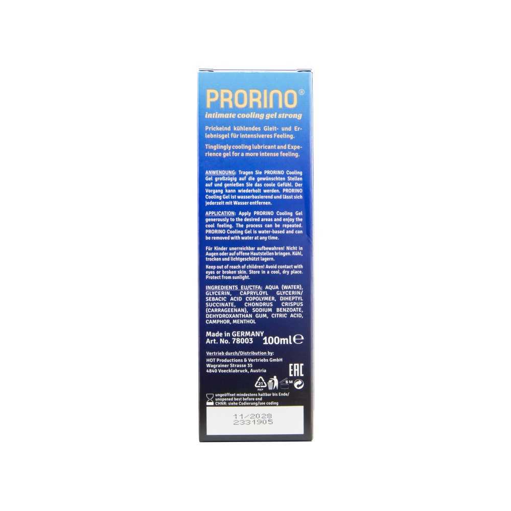 Ein wichtiger Bestandteil des Gels ist Menthol, das für den intensiv kühlenden Effekt verantwortlich ist. Menthol wirkt belebend, fördert die Durchblutung und verstärkt die Empfindlichkeit der Haut. Dadurch sorgt das prorino cooling gel nicht nur für Kühlung, sondern auch für prickelnde Spannung und gesteigerte Lust.