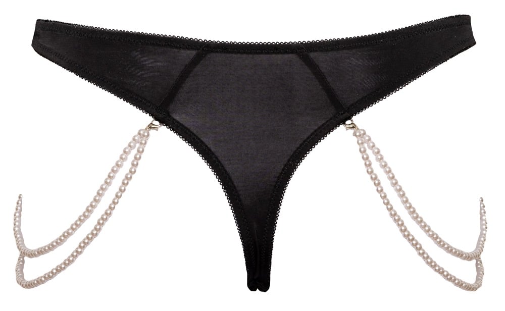 Riostring von Cottelli LINGERIE aus kostbarer Stickereispitze (vorne) im Mix mit passformsicherem Stretchmaterial. Jeweils seitlich mit elastischer Doppel-Perlenkette, die beide dank kleiner Karabiner auch komplett abnehmbar sind.