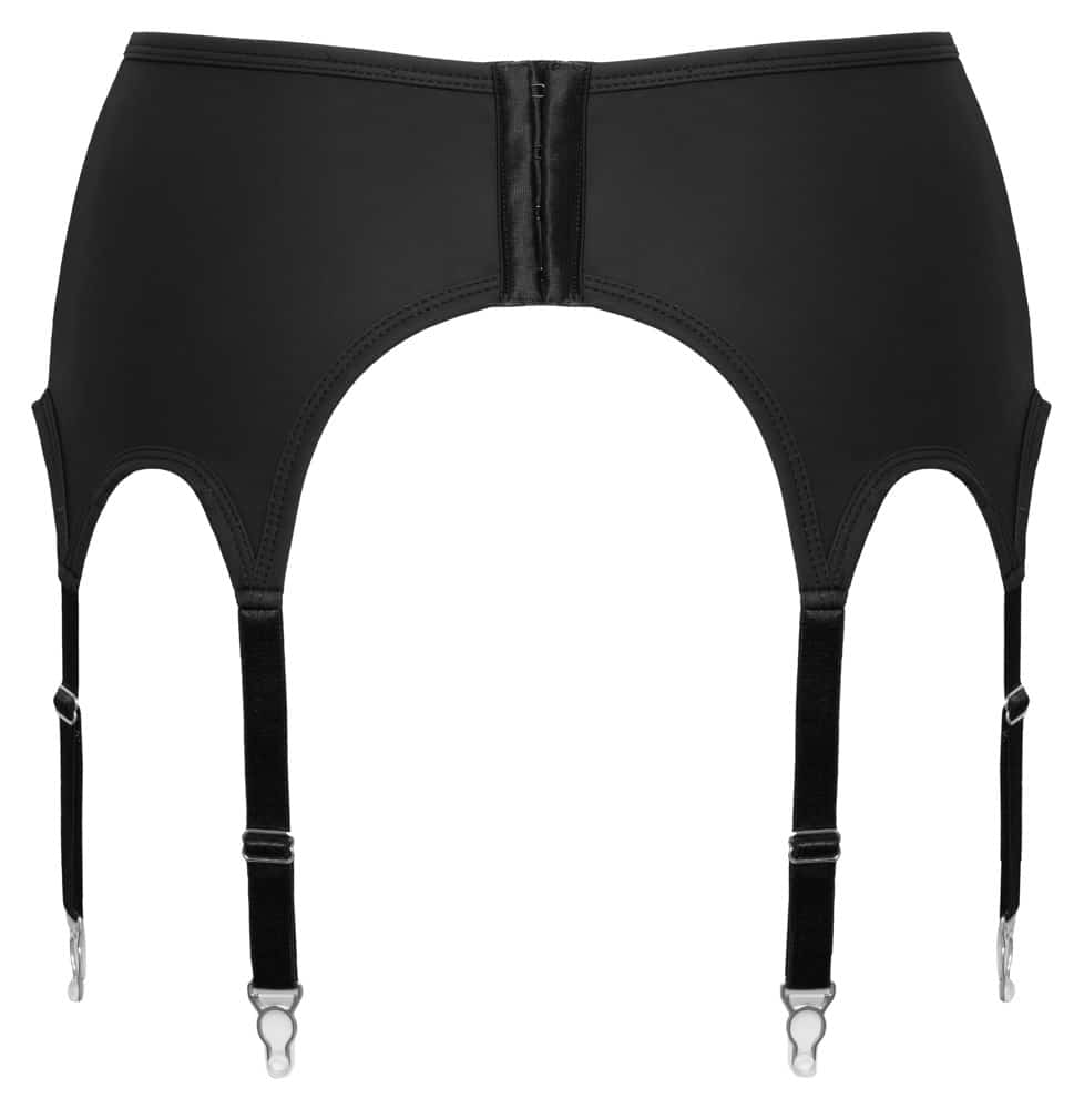 11 cm hoher Strapsgurt von Cottelli LINGERIE komplett im edlen schwarzen Mattlook mit silberfarbenen Metalldetails. Weich und elastisch für hohen Tragekomfort. Insgesamt 8 verstellbare Strumpfhalter. Im Rücken mit Hakenverschluss.