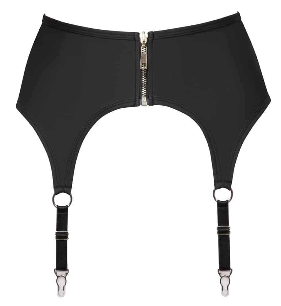 Breiter Strapsgürtel von Cottelli LINGERIE im schwarzen Mattlook mit dekorativen silberfarbenen Details. Vorne mit praktischem durchgehendem Reißverschluss. Die Strumpfhalter an den stylischen Ringen sind in der Länge passend verstellbar. Rundum elastisch und weich anschmiegsam für hautnahen Sitz und maximalen Tragekomfort