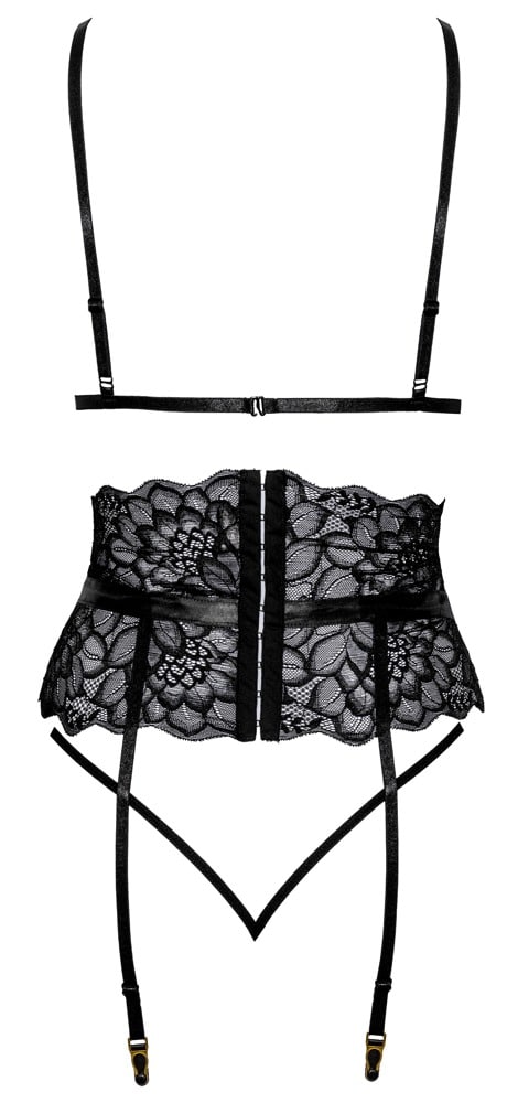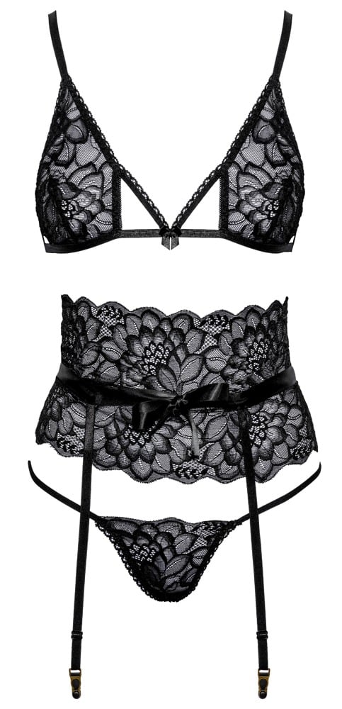 Soft-BH, Strapsgurt & String im eleganten Set von kissable komplett aus feiner schwarzer Spitze. Rundum weich und elastisch für höchsten Tragekomfort. Stylischer BH mit Hakenverschluss im Rücken und passend verstellbaren Trägern. Der taillienbetonende Strapsgurt punktet mit Satinbändern, die vorne zur Schleife gebunden werden. Der Hakenverschluss im Rücken geht über die volle Breite, die Strumpfhalter sind passend verstellbar. Der kleine String verführt mit seinen beiden schmalen Stretchriemen, die sich im Schritt vereinen.