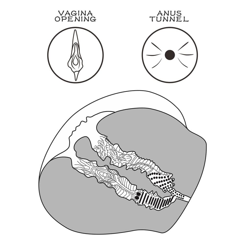 Gefertigt aus hautähnlichem, angenehm weichem Material, bietet dieser Masturbator zwei anatomisch geformte Öffnungen – eine realistisch modellierte Vagina sowie einen engen, reizvollen Anus. Die detailgetreue Gestaltung sorgt für ein besonders stimulierendes Erlebnis, das sich kaum von echten Begegnungen unterscheidet.