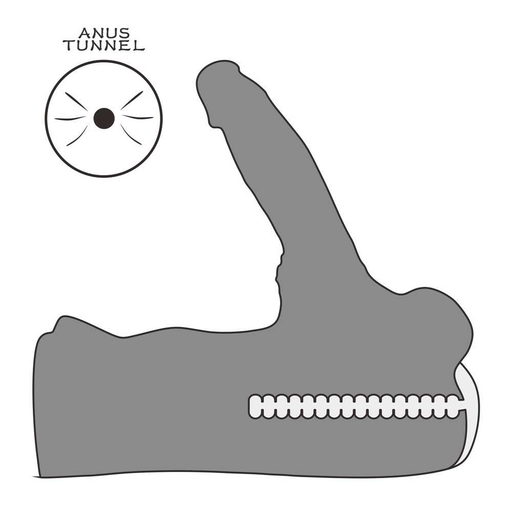 Das technische Highlight ist der integrierte, extra lange Penis mit innerem Metallskelett: Er misst stolze 18,5 cm in der Länge (Ø 4,3 cm) und lässt sich dank des stabilen Rahmens in jede gewünschte Position biegen und dort fixieren. Zusätzlich verfügt der Torso über eine anatomisch geformte zweite Öffnung: