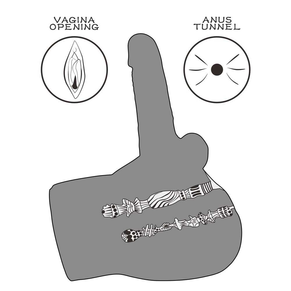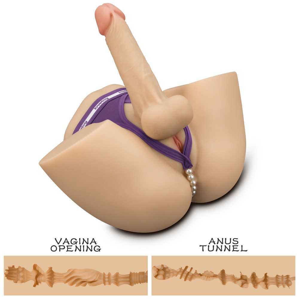 Das Highlight ist der integrierte Penis mit flexiblem Metallskelett: Er ist 18 cm lang (Ø 4,5 cm) und lässt sich dank des inneren Rahmens in jede gewünschte Position biegen und fixieren. Zudem verfügt der Torso über zwei weitere realistische Öffnungen: