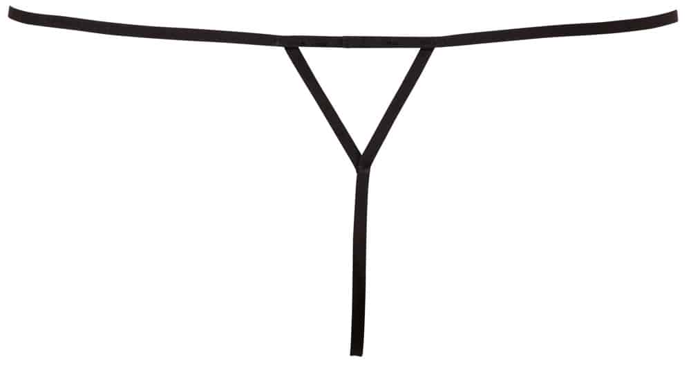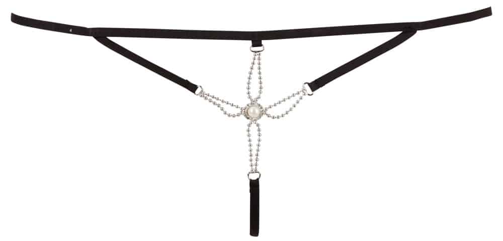 Aufregender String in Riemchen-Optik mit einer aufwendigen Perlenverzierung über der offenen Scham.