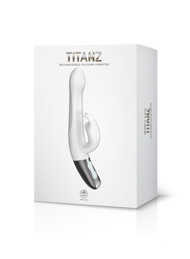 Durch die Kombination von interner und externer Stimulation sorgt der Titanz Rabbit Vibrator Weiß 8.5 Zoll für explosive Höhepunkte und unvergleichliche Lustmomente.