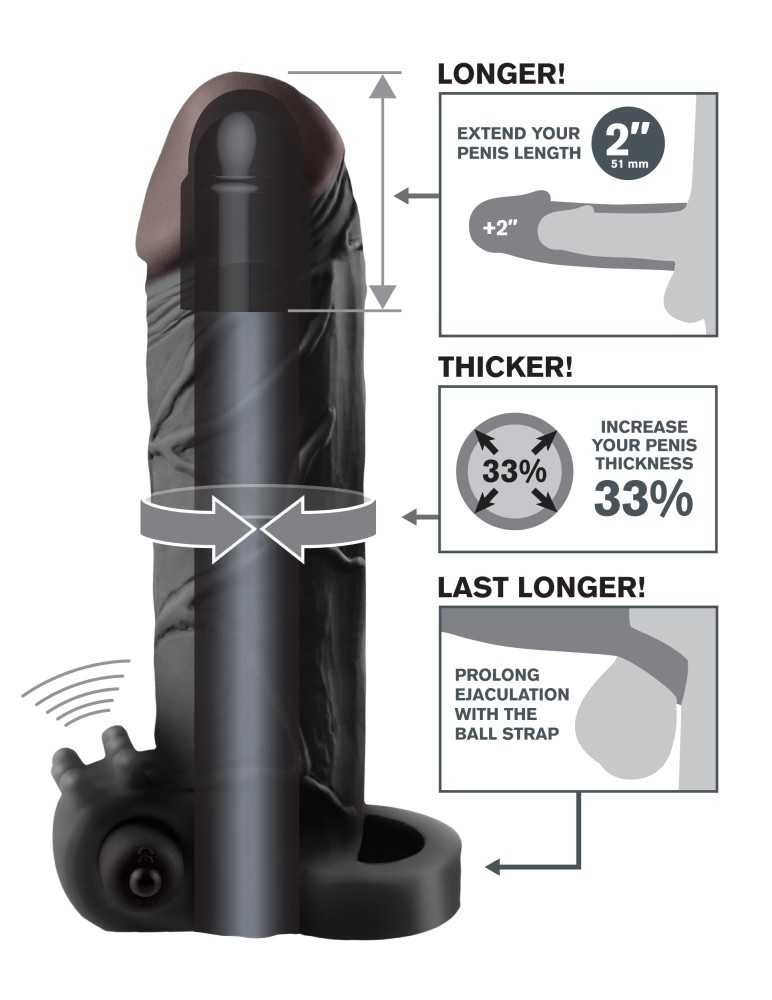 Der Aufsatz wird wie ein Kondom über den Penis gestreift und bedeckt diesen vollständig. Mit seiner zusätzlichen Länge von ca. 5 cm und dem realistischen Material sorgt die Vibrating Real Feel 2″ Extension Black für intensivere Penetration und ein gesteigertes Erlebnis für den Partner oder die Partnerin. Durch das hautähnliche Material fühlt sich die Erweiterung besonders natürlich an.