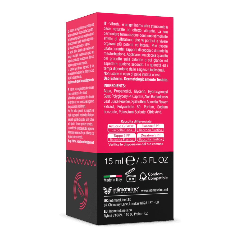 Das Besondere am Vibroh Stimulating Gel ist sein einzigartiger vibrierender Effekt. Direkt nach dem Auftragen entfaltet sich ein intensives Kribbeln, das wie sanfte Vibrationen wahrgenommen wird. Diese stimulierende Wirkung verstärkt die Durchblutung und macht intime Berührungen noch aufregender.